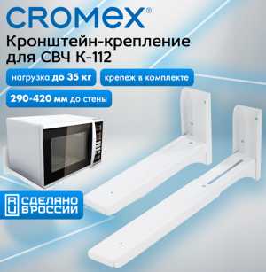 Кронштейн-крепление для СВЧ, нагрузка до 35 кг, CROMEX (КРОМЕКС) K-112, регулировка до 42 см, белый 689 р.