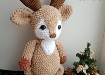 Оленёнок 🦌🎄 Связан из плюшевой пряжи. Рожки из 100% хлопка. Наполнитель: синтепон. Рост: 30 см. без учёта рожек.