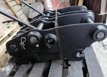 Квик каплер QC 50M для New Holland LB110 115, Case 570T ST пружинный (межосевое 390 мм, пальцы на 45 мм), с пальцами в...