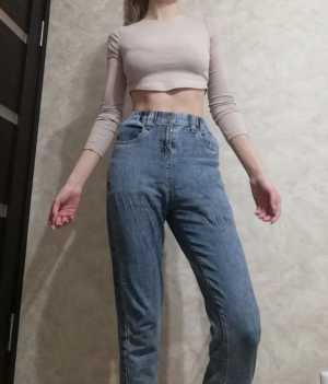 Приталеные джинсы с высокой посадкой на размеры XS - S. Можно и на М в принципе. Длина 90 см.