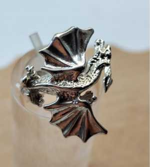 Кольцо серебряное Дракон с крыльями. Серебро - 925 проба. Российское клеймо. Вес кольца – 4 гр.