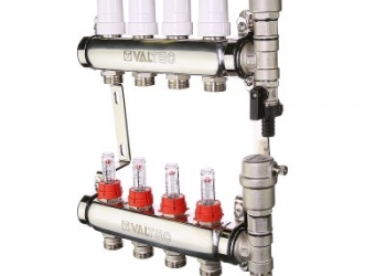 Коллекторный блок из нержавеющей стали служит для распределения потоков по контурам теплого пола, радиаторного отопления...