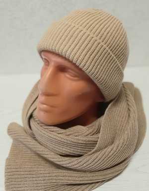 Вязаная двойная шапка с отворотом. Флисовый подлад. Переплетение - разборный полуфанг в 2 нити. Пряжа - акрил 100%.