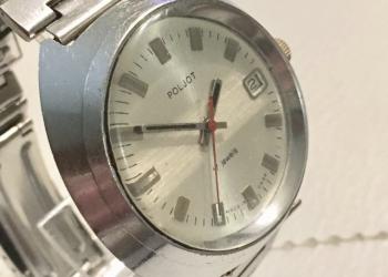 Крупный экспортный Полёт-шайба,циферблат с календарем. Корпус в отличном состоянии.Часы на ходу.Браслет в комплекте.