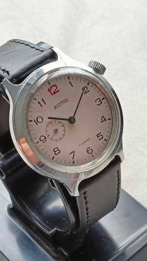 Редкий Восток с боковой секундной стрелкой и красной 12. Часы на ходу и в отличной сохранности. Ремешок в комплекте.