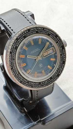 Уже редкая модель с прыгающим часом. Часы автомат 25 камней на ходу. Всё работает, состояние на фото.