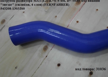 Патрубок радиатора МАЗ (Е2) (L=475 мм, D=70х80 мм) нижний "зигзаг" (силикон, 4 слоя) (FERNFAHRER) Каталожный номер товара...