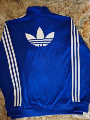 Брэндовая, красивая мастерка Adidas Originals унисекс, ярко синего цвета с белыми полосами в кассическом силе ретро с...