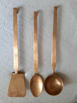 Старинный набор кухонной утвари, состоящий из трех предметов, выполнен из латуни, Франция.