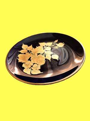 Винтажная декоративная тарелка кобальтовая с позолоченными цветочными мотивами, выполненная вручную с росписью золотыми...