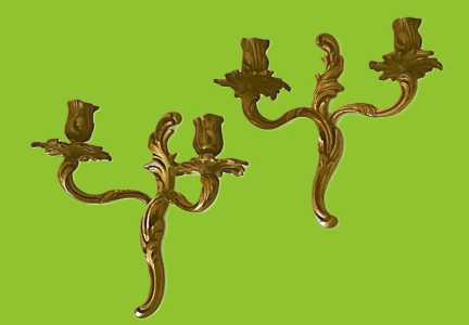 Старинные парные подсвечники для стены из золоченой бронзы, Франция Начало XX века.