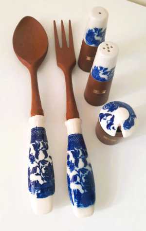 Отличный винтажный набор для сервировки стола из пяти предметов 1950-х годов украшен классическим узором «Blue Willow» от...