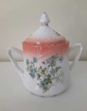 Антикварная сахарница. Лимож, Фарфор. Франция. Начало XX века. Высота без крышки — 11 см, с крышкой — 17 см.