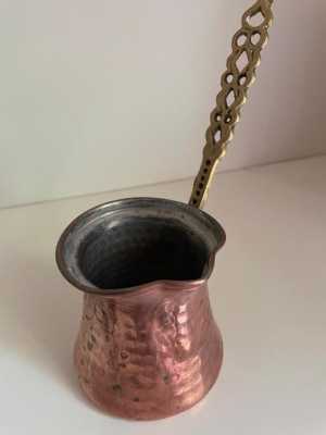 Винтажная Турка (Джезва или Ибрик) для кофе медная с покрытием пищевым оловом внутри ("Ручная чеканка"). Объем 100 мл.