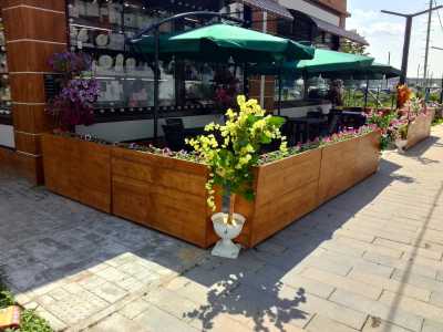 Изготовление кашпо (ящиков для цветов и декоративных деревьев). Материал сосна, фанера.