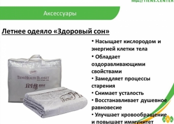 Летнее одеяло «Здоровый сон» «Тяньши» (размер 200 х 230 см) Как порой непросто прийти быстро в себя после трудного рабочего...