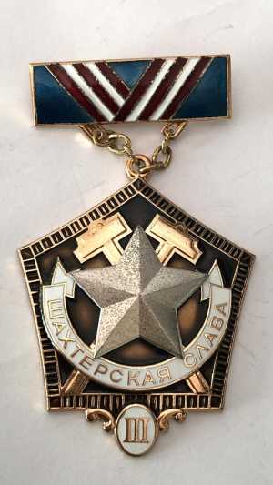 Знак Шахтёрская слава 3 ст. значков много пишите на интересующие вас темы. самовывоз.озон.яндекс.почта.