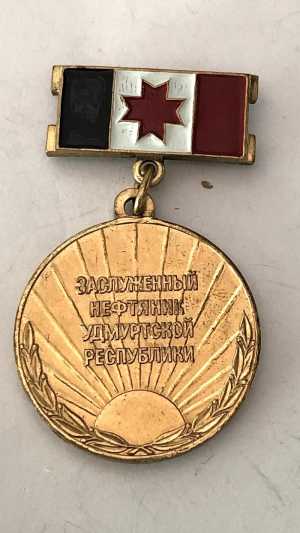 Знак Заслуженный нефтяник Удмуртской республики.тяжёлый значков много пишите на интересующие вас темы. самовывоз.озон.