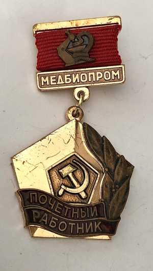 знак Почётный работник МЕДБИОПРОМ ммд.накладка.горячая эмаль значков много пишите на интересующие вас темы. самовывоз.озон.