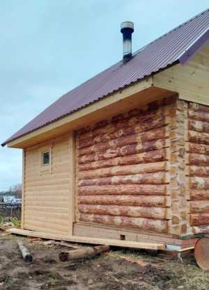 Сруб бани размером4*4 с террасы 2*4 из бруса 15*15.