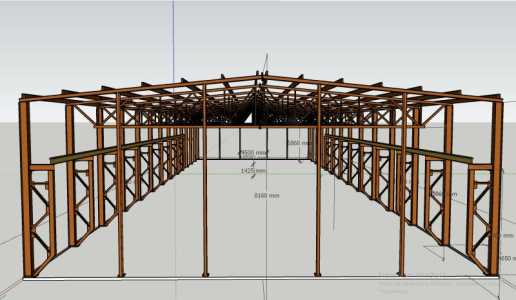 В продаже из наличия каркас ангара однопролетный, двускатный с кран балкой. Размеры: Ширина 18,5 метров.