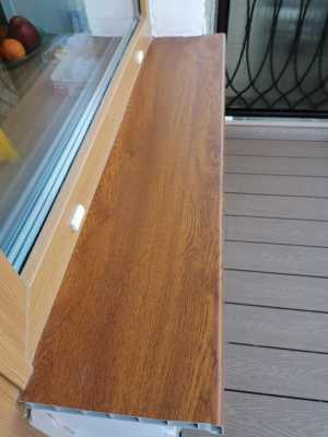 Остался кусок нового подоконника, пластмассовый, коричневый под дерево. Размеры: 88см на 20см.