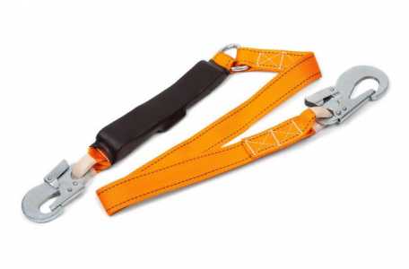 Строп из полиэфирной ленты с 2-мя карабинами и амортизатором. Не регулируемый. Длина включая карабины - 1450+50