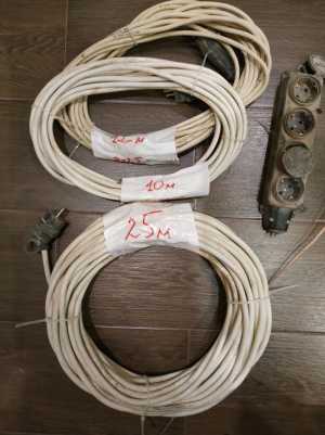Удлинитель с заземлением + вилка (50р/м): 10м/500р, 12м/600р, 25м/1250р. Розетки - Нет