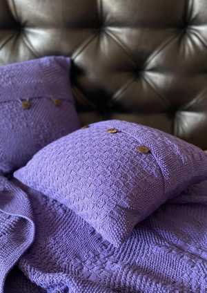 Комплект из пледа 100х80 и 2-х наволочек 40х40 на кокосовых пуговицах. Цвет насыщенный фиолетовый. Пряжа хлопок/акрил.