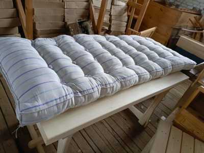 Размер- 75х190х8 см, максимальная нагрузка на спальное место- не менее 95 кг, жесткость- средняя, материал чехла - тик.