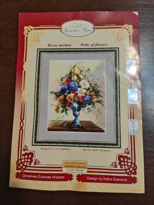 Продаю схему и остатки ниток для набора Вальс цветов ГН-009 Золотое руно. Размер готовой картины 36,3*23,2 см.