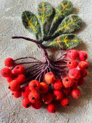 Брошь Рябина, ручная работа, сделана из Прибалтийской 100% шерсти(войлок), фелтинг, сухое и мокрое валяние..