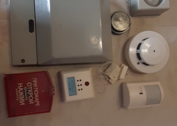 Дымовые датчики ИП 212-45, СМК большие и маленькие, разветвительные коробки разнообразные, 1 прибор УОТС-М, 2 оповещателя...