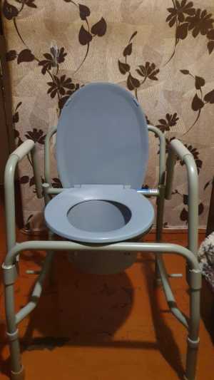 Кресло-туалет б/у в хорошем состоянии Стальная конструкция, резиновые наконечники на ножках, сьемное ведро с крышкой...