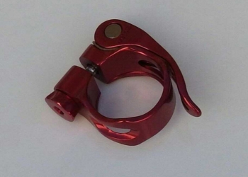 Зажим подседельной трубы. Диаметр 31, 8 мм, с эксцентриком, материал: анодированный алюминий, цвет красный.