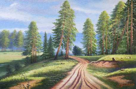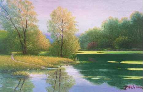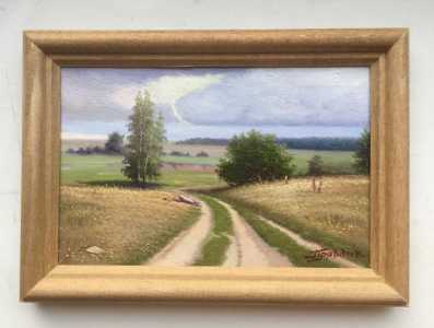 Картина маслом ,,Простор,, 20х30см. Художник Правдин П.Н. Картина написана в 1996г.Рамка из кедра , ручной работы.