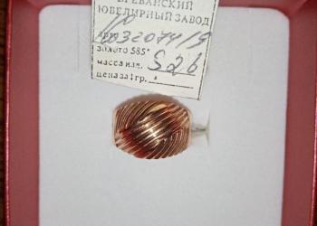 Кольцо "Чалма" золото 585 пр Ереванский ювелирный завод 18 размер.