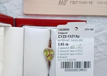 Золото 585 пр вес 2,62.гр. камни Хризолит,, Фианит