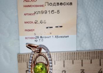 Золото 585 пр вес 2,62.гр. камни Хризолит,, Фианит