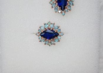 Золото 585 пр Вставка синий Сапфир, голубой Топаз Вес 3,97 гр