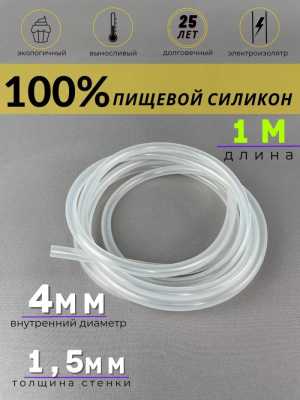 Силиконовая трубка пищевая 4 мм х 1,5мм, 1м, для кофемашины..