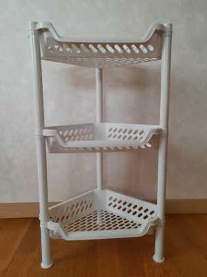 Угловая пластмассовая полка, размер каждой полки 28х28х38см, высота 66см белая на 3 уровня.