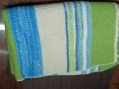 Есть три пледа, два ручня вязка и один яркий с рисунком.
