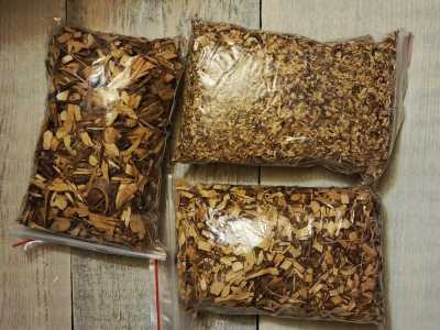 Щепа домашнего производства, делали для себя, оказалось очень много. Есть мелкая, средняя и крупная.