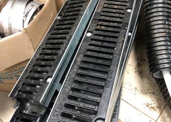 Лоток дренажный, в комплекте с чугунной решёткой, длина 1000 мм, глубина 95 мм, ширина 155 мм - от борта до борта.