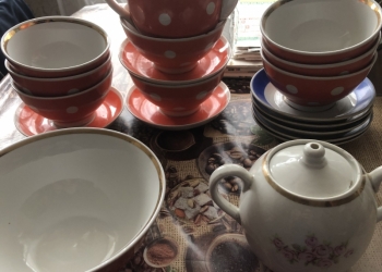 Продам сервиз чайный фарфоровый 80-х годов,чайник,пиалы,сахарница и блюдца в среднем состоянии