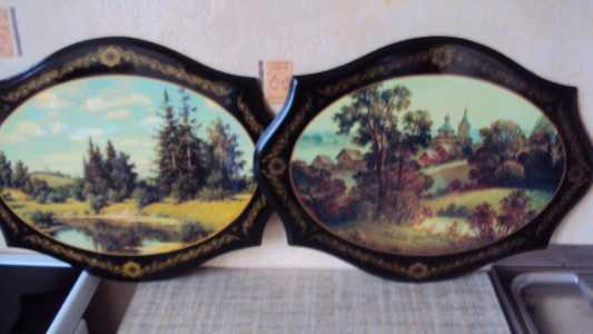 Продаю 2 лаковые миниатюры на дереве,размер 37х28 см.Цена 1500 руб/шт.