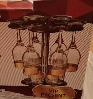 Новый мини бар 12 предметов. (6 стопок и 6 бокалов) Полный комплект с двухярусной подставкой. Г. Гусь- Хрустальный