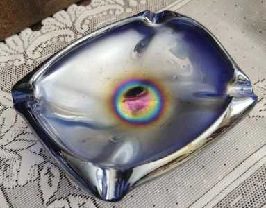 Продается пепельница из цветного стекла с перламутровым покрытием в хорошем состоянии. 1960-1970гг.