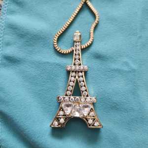 Крупная подвеска на длинной цепочке со стразами. Цвет золотой. Новая.